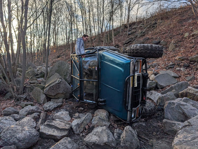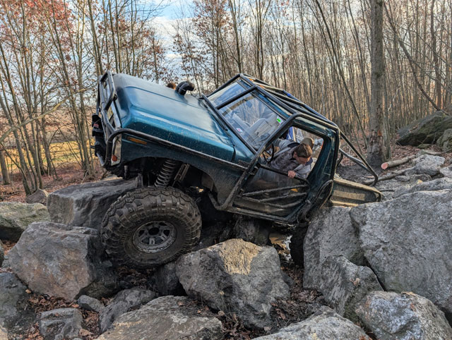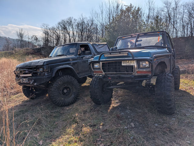 This thing has been sitting neglected since the wheelin trip, finally got some time to work on it I need to get the soft top off, decided this winter we're going to run the hard top instead of the half cab. But, i want to pull the sliding windows out over fears im going to break one offroad The top has been sitting up on blocks out in the stones for a year now.....pulled the windows out to find an ant colony in the seals! Dug a set of tinted windows out of the shed new seals from LMC ...and windows installed! I threw the top on top of my toolcart and rolled it out of the way..... ...and then shoehorned the bronco into the garage! Had to put a set of 305s on the back, it was the only way to get it low enough to get it thru the doorway! Its been in the 20s for a couple days now and its only going to get colder over the next few days, so im going to work on the bronco in the garage in the heat so i dont have to worry about cold windows not wanting to flex. Gonna try to get the top swapped tomorrow, and then start fixing the brakes and steering from the Rausch Creek trip. Rausch Creek! Joe: Joe Sr: Ox: PXL_20251122_202236042.jpg PXL_20251122_170558488.jpg PXL_20251122_174644129.jpg trail_f.jpg PXL_20251122_150939407.jpg PXL_20251122_151215846.jpg PXL_20251122_203406136.jpg PXL_20251122_163113763.jpg PXL_20251122_202940250.jpg I sheared off a brake line adapter on the rear axle and i bent the crap out of my steering so ive got to fix that too Epic day of wheeling. I dont really know where to start, but there was lots of video shot, so at some point in time myself or Joe will probably get a video put together. The diesel ran incredible, im guessing ive had a big boost leak for a long time because boost is up and EGTs are down. Well worth all the headaches! Buttoning up loose ends. Here's the connector for the fuel selector valve with the loom stripped away The only thing i need to do is splice the Y/LB into the Y/W The DB/Y is the signal wire from the front tank float, and the R and Br/W come from the switch, but i have the switch unplugged in the dash so those are dead at both ends now. So then i just fixed the loom and now it looks like i never had a front tank Got some fittings cobbled together to fix the water/meth injection. Not pretty but itll do for now until i can come up with a cleaner looking solution ...and then i ran around like a chicken with my head cut off packing tools and spare parts, hooking up the trailer and loading up for tomorrow! Here's hoping we have a good day tomorrow! Picking up where we left off, engine harness is now reinstalled The second i touched the glow plug relay it broke; thankfully Napa had one in stock so thats already fixed Fuse box is now reassembled and looking like i never touched it After some research on oil filters, i opted to switch to the Fleetguard oil filter, p/n LF9027 Some interesting stuff going on in there. If youre not familiar with this filter, it is a standard 30 micron filter, with a 5 micron bypass filter built into the bottom. Its a good way to get bypass oil filtration, without having to install a big bulky bypass filter system on the engine. That was the last item, nothing left to do but to turn the key and see if it would start.......and it did! The fuel gauge is reading past full, so the circuit must be open. I guess it ties into the selector valve on the frame rail. Got the book in front of me, going to try to figure that one out tonight so i can rewire it tomorrow.. Went for a test drive and it ran great! Havent driven it in a month so its hard to say, but id swear it spools faster than it used to. I mean, it should as i had a pretty big leak on the driver up-pipe, but man it runs good now. I gave it a good thrashing on the freeway and got it to 32-33 PSI pretty quickly before i let off. Just did a quick 5 minute drive and came back to check stuff. Almost had a mini heart attack, i thought the valley was full of fuel! Its not though, its water. Pulled the water/methanol nozzle out of the intake to test the system and found the adapter fitting for the nozzle is leaking Closer inspection shows the fitting is split in half So tonight at work im going to scrounge up some fittings to see what i can find to get it hooked back up, because i would really like it to be working for saturdays wheelin trip, and then ive got to get the fuel gauge working. So very close to being done! What is with the damn deer this year?!!! Hit another one last night. 30 seconds from the parking lot at work, small doe ran down the side street and hit the side of the bronco No major damage thankfully I dont remember this dent in the door being here Definitely hit it with the tire Coworker was right behind me, said the hit killed it instantly. Pretty sure one of my coworkers took it actually. I wasnt hauling it home in the back of the bronco, thats for sure! Accessory drive is all back together, and i reloomed and ran the harness for the Alternator and a/c compressor The rest of the engine harness comes from the driver side, and is a bit of a mess. Broken loom, disintegrating tape, etc. Pulling the engine harness apart, i can eliminate all this crap The square plug goes to the fuel bowl, and that module is the WIF module, which i dont need anymore Looking at the fuel bowl, i can eliminate this entire companion harness Except, oh wait, i cant, because the pigtail for the IPR is in here. This whole harness is pretty well shot: Kinda surprised i didnt have any issues with how bad it is Plan is to take the pigtail for the IPR out of that harness and splice it back into the main harness so i can clean up the whole harness a good bit. Anyways, main harness is stripped, all this junk can go: Everything i dont need removed. Tomorrow i will begin cleaning this up and re-looming it for reinstall Progress! Next thing i needed to do on the diesel was run fuel lines. So heres what i came up with. I started with the original lines at the fuel tank I didnt use the full length
